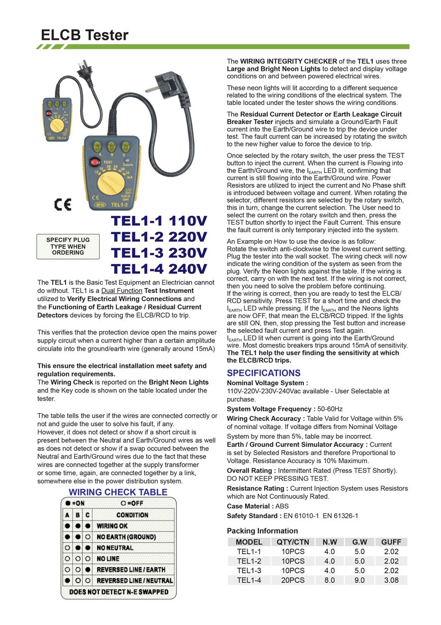SEW0057-KKINSTRUMENTS TEL-1-3 230V UK PLUG SOCKET TESTER (WITH ELCB FUNCTION)Well done, KKInstruments!
